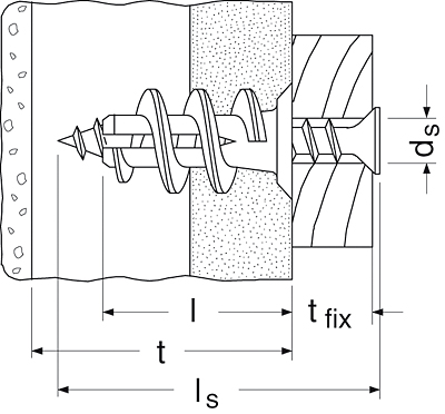 Дюбель для гипсокартона GK изготавливается из высококачественного нейлона. Дюбель GK вкручивают заподлицо с поверхностью гипсокартона, используя прилагаемый установочный инструмент. Следует избегать чрезмерной затяжки дюбеля. Поэтому при использовании шуруповерта необходимо ограничивать момент затяжки. Короткая длина дюбеля требует небольшого пространства на задней стороне плиты. В результате дюбель GK можно использовать при неизвестной толщине плиты и глубине пустот. Пригоден для шурупов по дереву, самонарезающих шурупов и шурупов для ДСП диаметром от 4,0 до 5,0 мм. Подходит для надежного и быстрого крепления картин, осветительных приборов и электрооборудования.