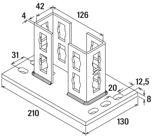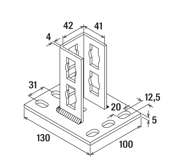 Седельные фланцы PSF обеспечивают прочные соединения между монтажными шинами FUS и конструкцией здания. Фланец присоединить шины под углом 90° к поверхности основания с помощью соединителя сквозного монтажа PFCN. Направляющие фланцев по крайней мере с трех сторон соответствуют профилу монтажных шин FUS, и идеально подходят для вставки соединителя сквозного монтажа. Фланцы предлагаются в следующих исполнениях: три варианта под шины в стандартном исполнении и поперечный вариант. Прочная опорные плиты имеют овальные отверстия, расположенные под углом 90°, облегчает процесс монтажа. Оцинкованные фланцы используются для установки внутри зданий, а элементы из горячеоцинкованной или нержавеющей стали — для наружной установки или монтажа в коррозионно-активных средах.