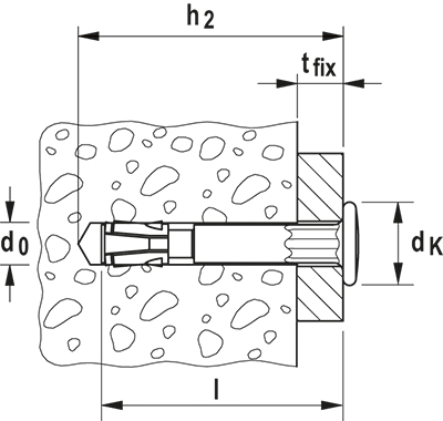 Гвоздевой анкер FNA II изготовлен из оцинкованной стали, нержавеющей стали или высококоррозионностойкой стали. FNA II подходит для крепления огнеупорных панелей, вентиляционных систем, монтажных шин. Надежность гарантирована наличием ЕТА и сертификатом огнестойкости R 120. FNA II монтируется ударным способом, что позволяет сэкономить время при сквозном монтаже. Установленный гвоздевой анкер FNA II автоматически фиксируется под действием нагрузки, при этом конус перемещается в распорную втулку и распирает ее в стенках просверленного отверстия. Во время затяжки конус перемещается в распорную втулку и расширяет ее, прижимая к стенкам просверленного отверстия.